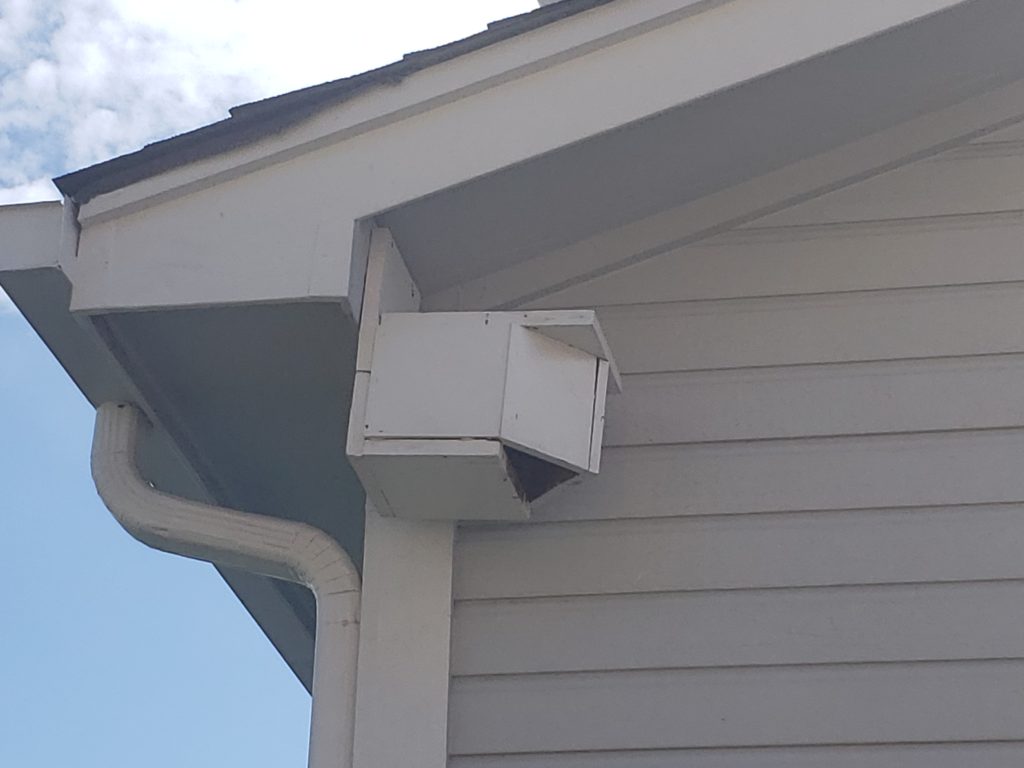 Nestboxes: They may use a slot box with a larger opening (e.g., 2-3″). One used a box mounted in a sheltered corner of a front porch. I have had them nest in a metal Purple Martin house mounted on a tall pole.
